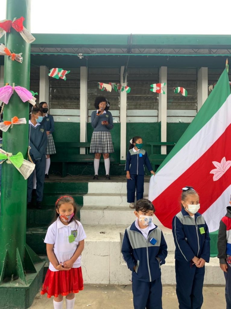 con el apoyo de toda la comunidad educativa. Dentro de las actividades programadas para esta fecha tan especial encontramos la realización de stands alusivos a la literatura infantil y al gran escritor Fernando Soto Aparicio. También, se realizó una izada de bandera a cargo de los estudiantes de grado décimo. En un ameno y corto acto cultural tuvimos la participación de los niños de la sección primaria y también estudiantes de la secundaria y media. La danza, música, poesía y teatro fueron los protagonistas de la jornada. Felicitamos a cada uno de los participantes de esta actividad y los invitamos a usar correctamente nuestro amado español.